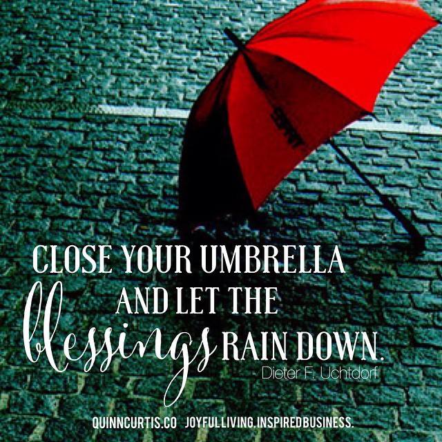 Miracles, blessings, amp; joyful moments are always raining down on us. Today let's put down our umbrellas amp; let them rain down on us. Time to open our arms wide amp; dance in the rain!