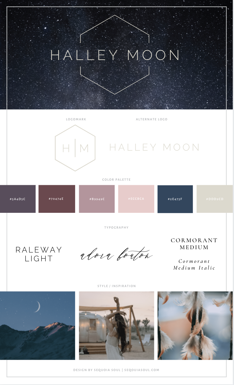 All the branding assets needed for the Halley Moon Premium Website & Branding Template.