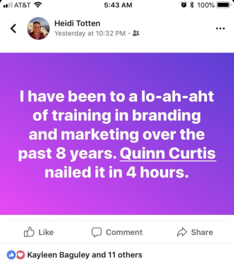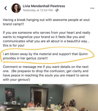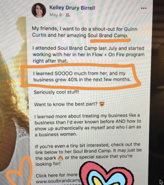 "If anyone is thinking about Soul Brand Camp... it’s absolutely life-changing work you’ll be doing. Quinn is a genius." - Lindsey Ardmore